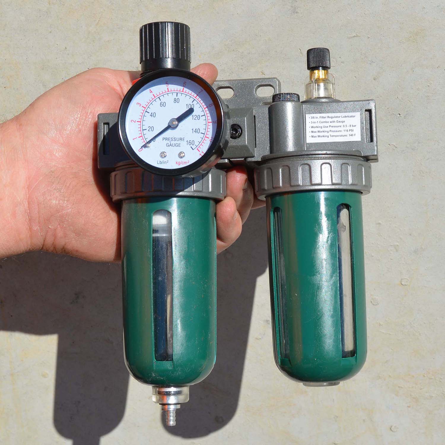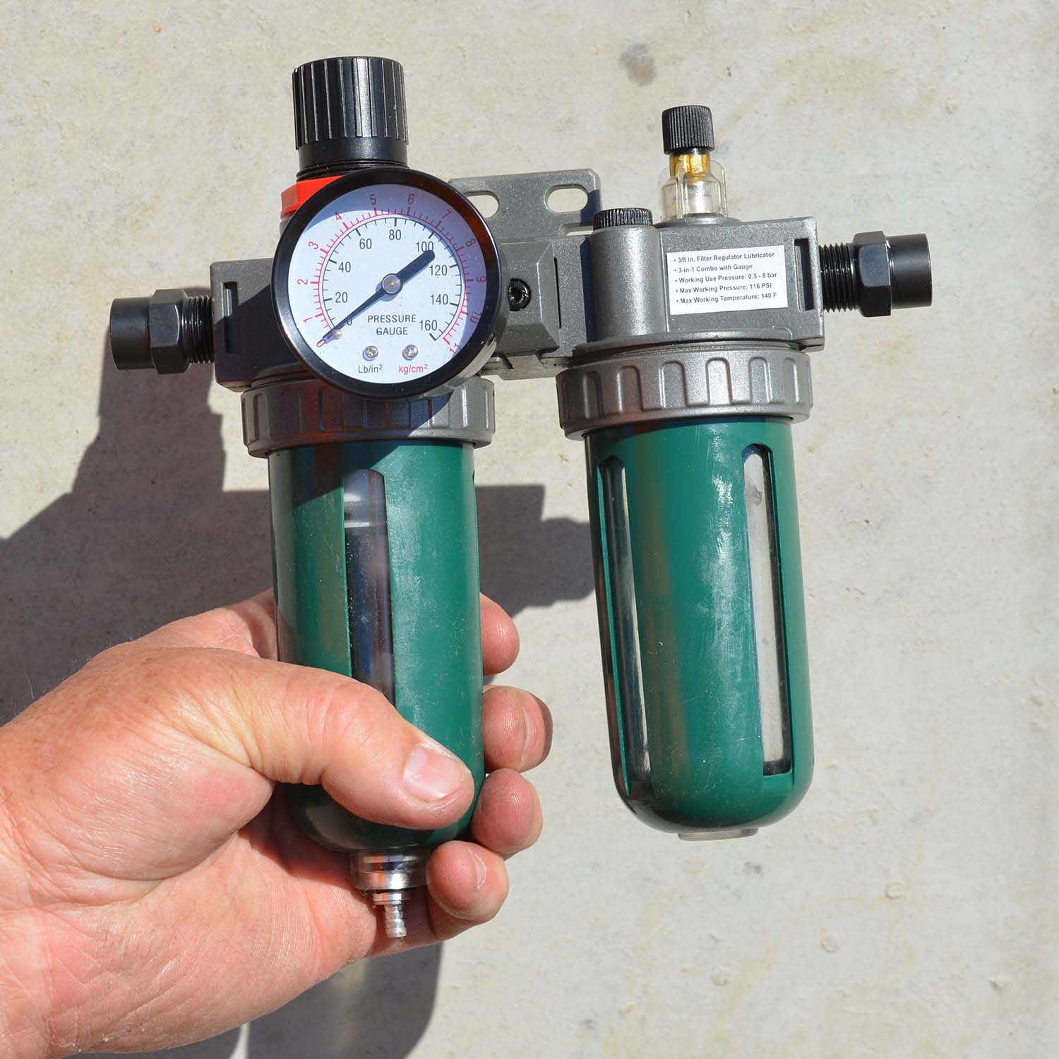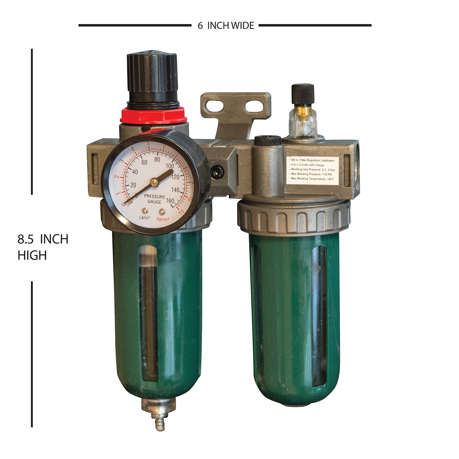 3/8 in. Filter Regulator Lubricator 3-in-1 Combo with Gauge