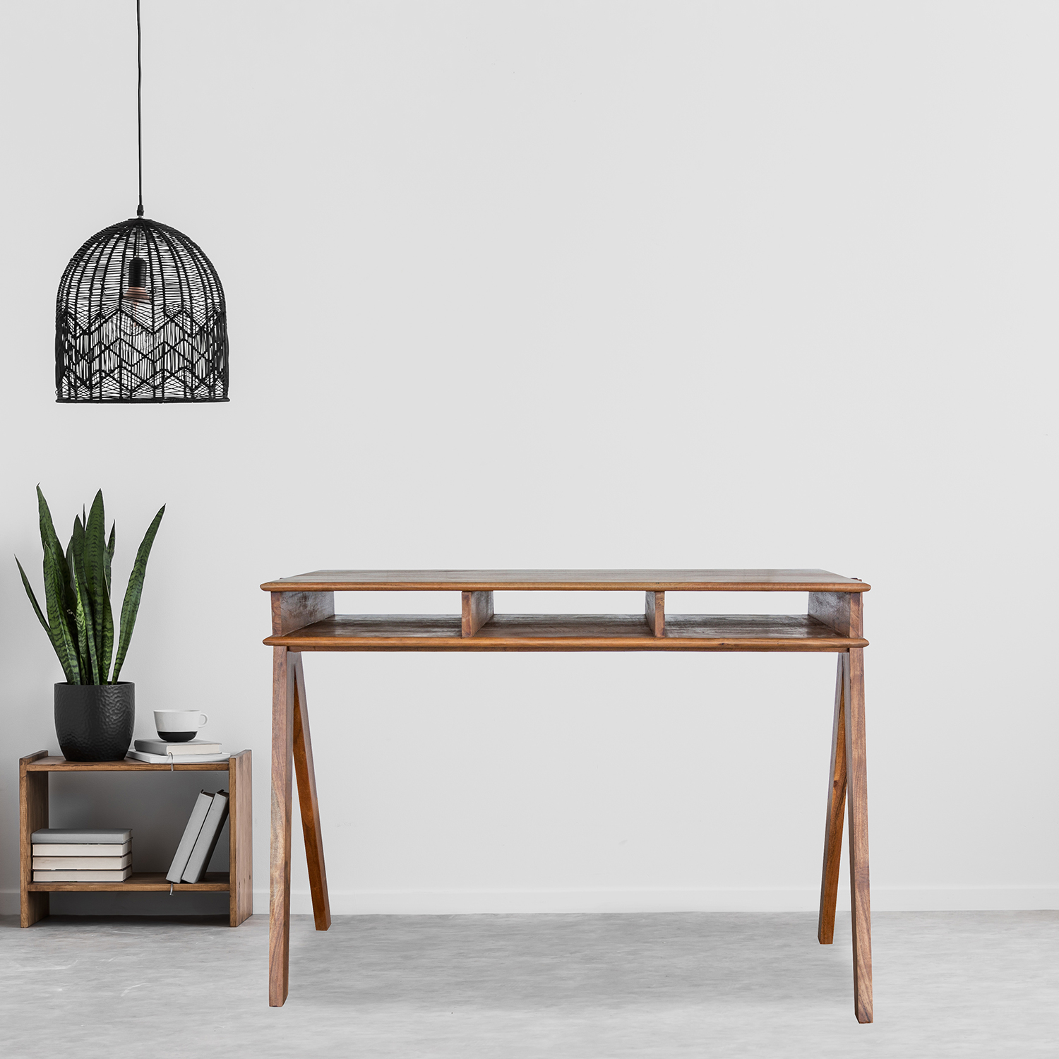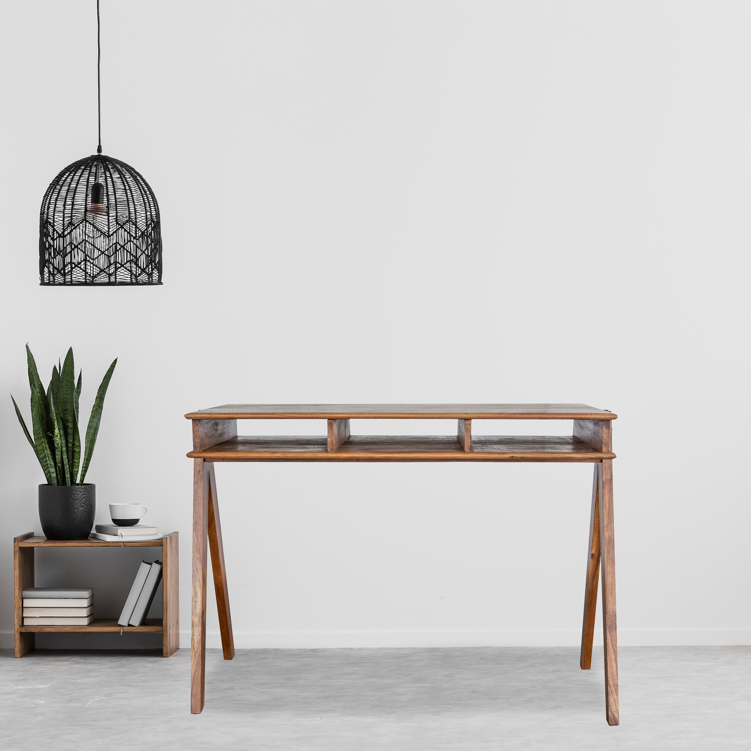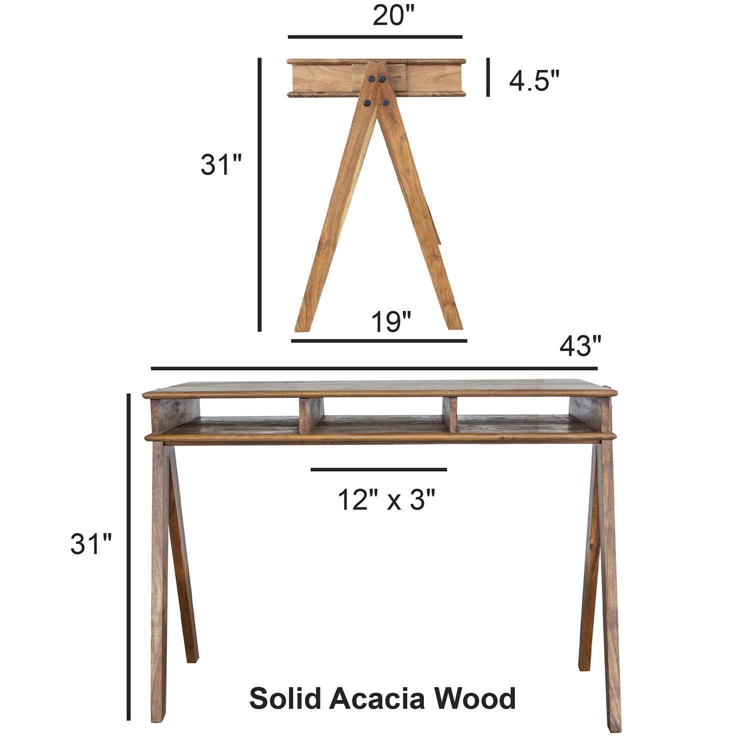 Acacia Wood Desk w/ Storage Pockets