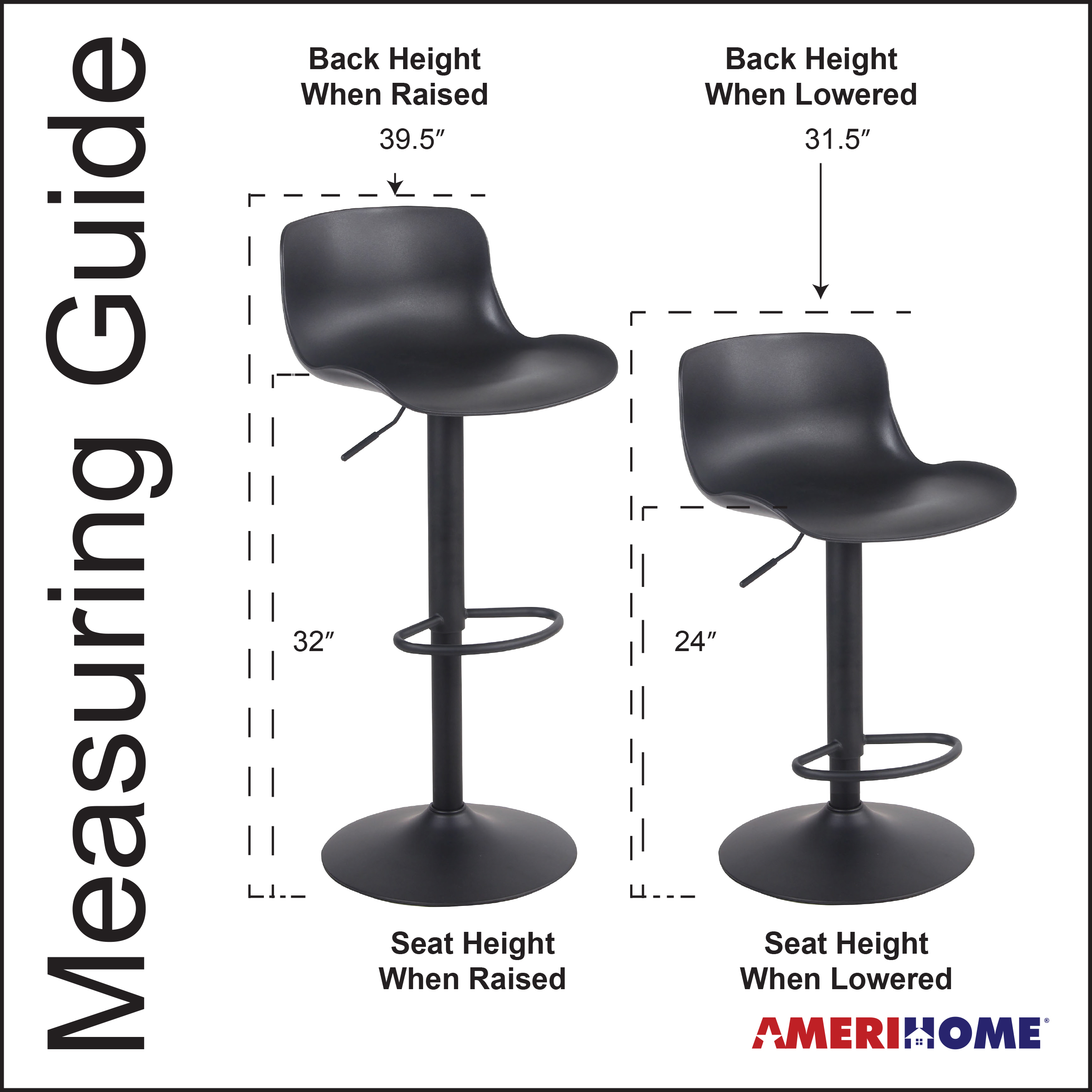 • Lowered Size: 32" H x 17" W x 17.5 D" (Seat level at 24")
