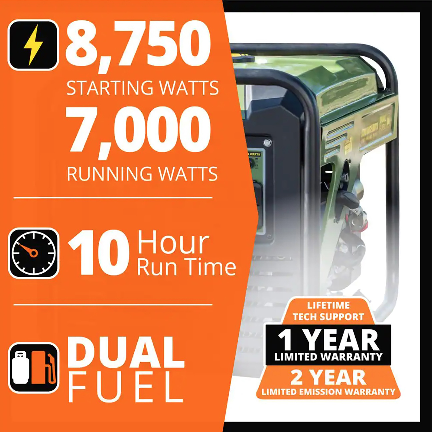 • 8750 Surge Watts / 7000 Running Watts*