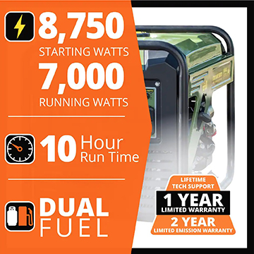 Dual Fuel 8750 Watt Invertor Generator