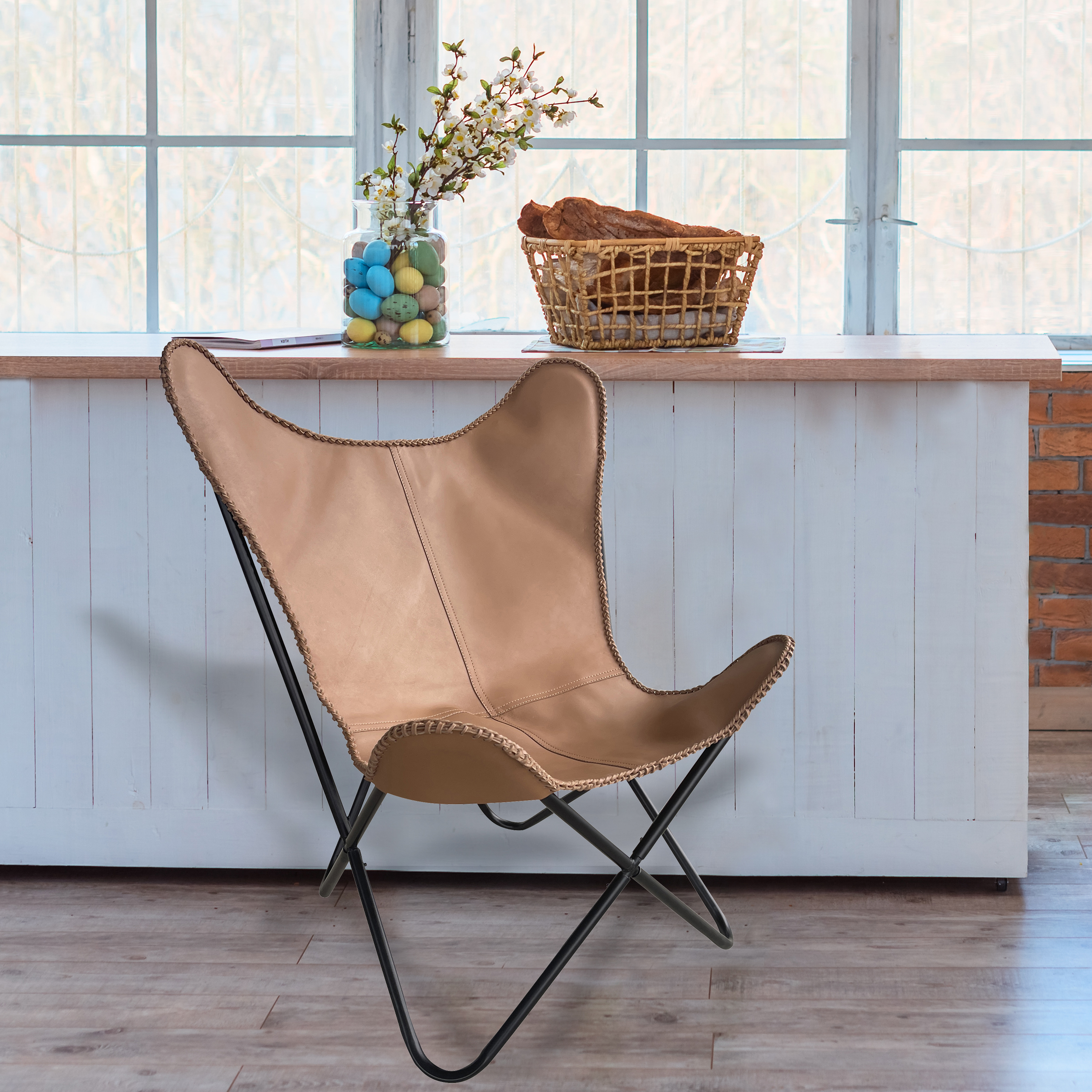 Butterfly Chair Genuine Leather Tan
