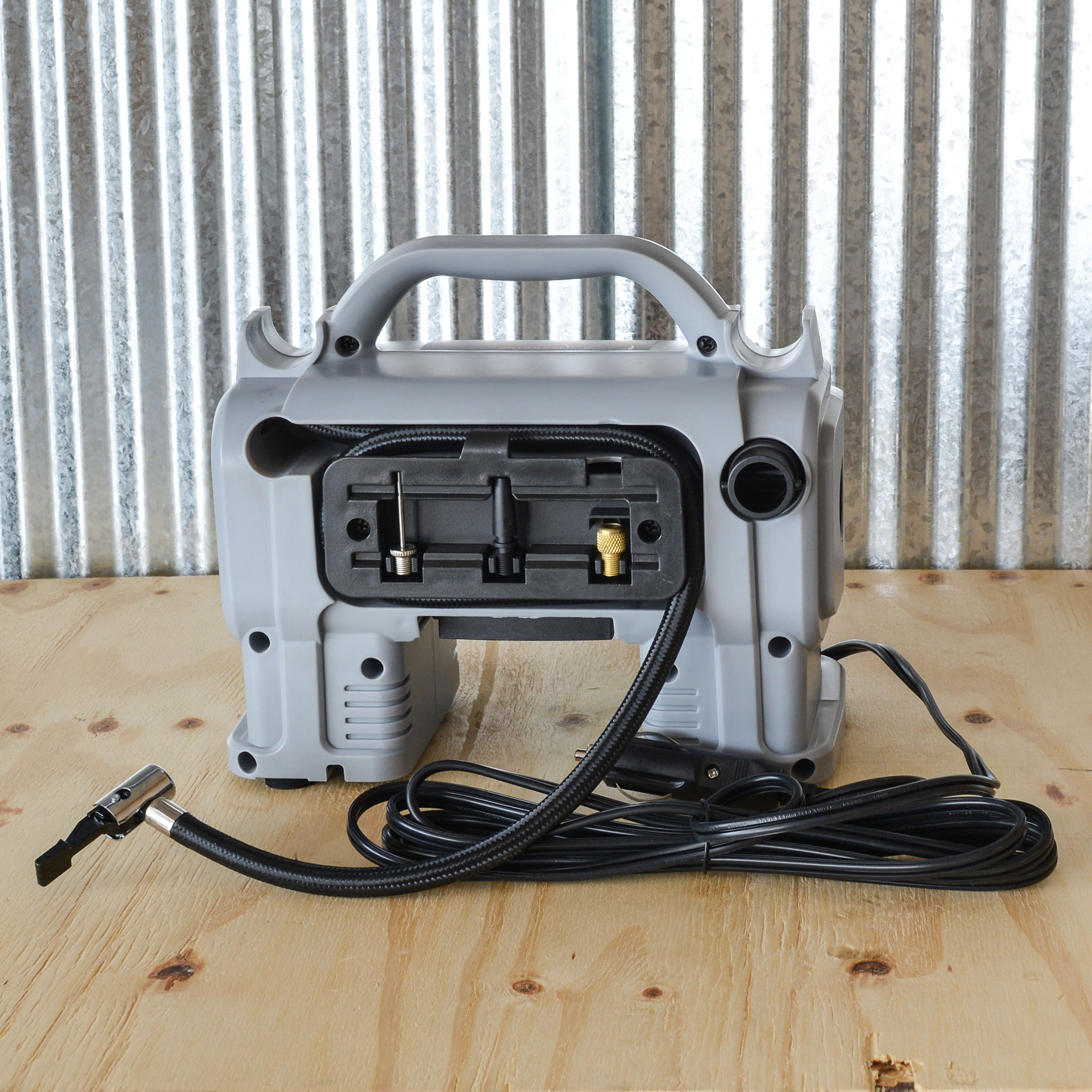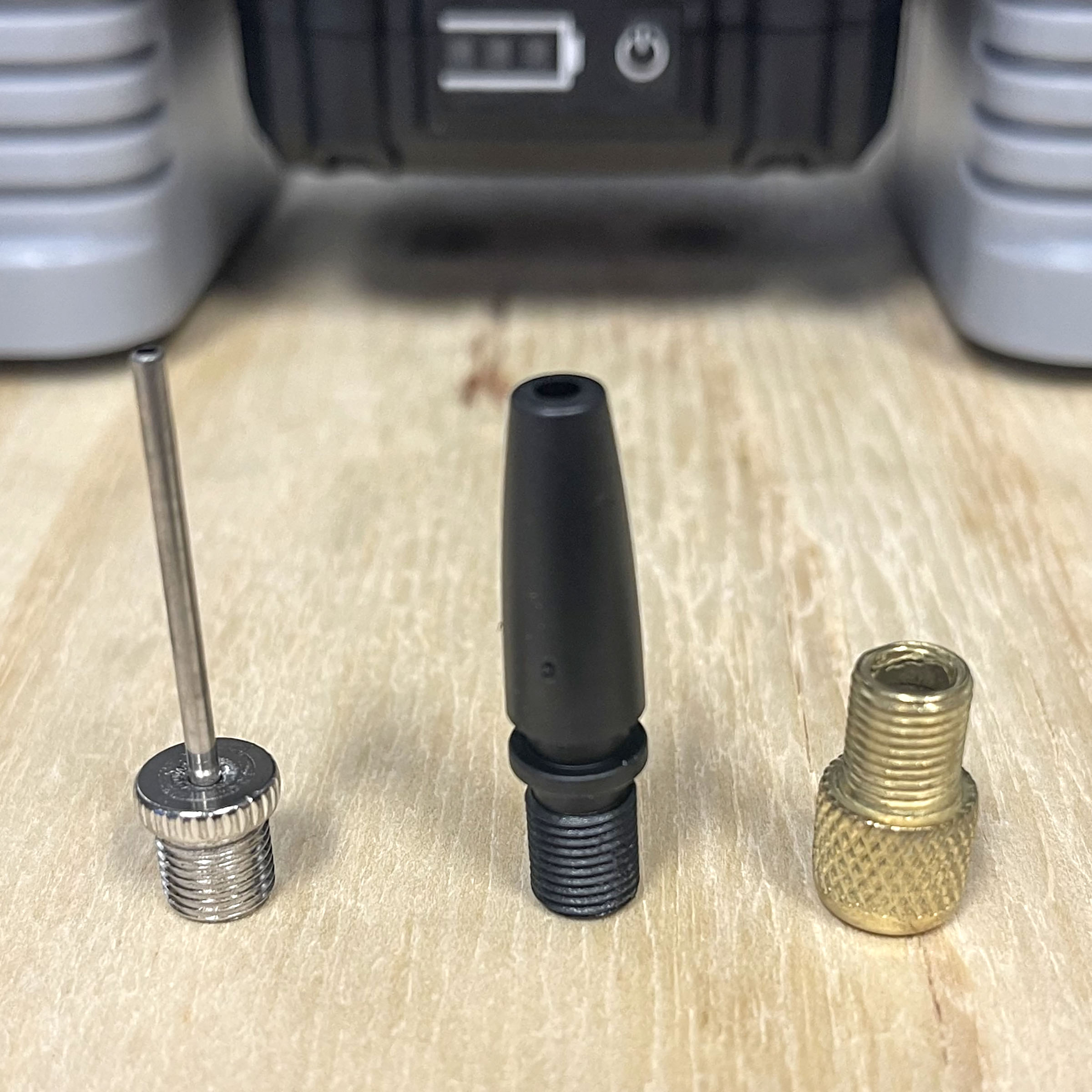 • Accessories: 1 x Ball Adapter, 1 x Inflatable Mattress Adapter, 1 x Tire Valve Adapter