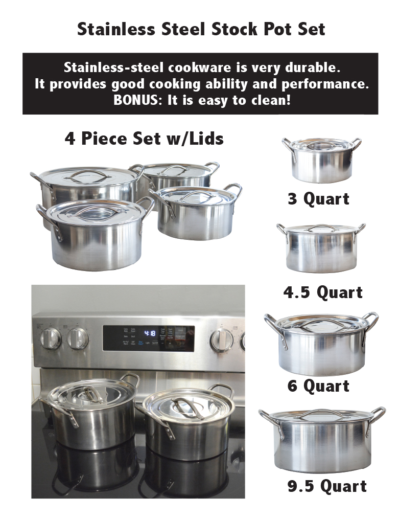 4 Piece Stainless Steel Stock Pot Set