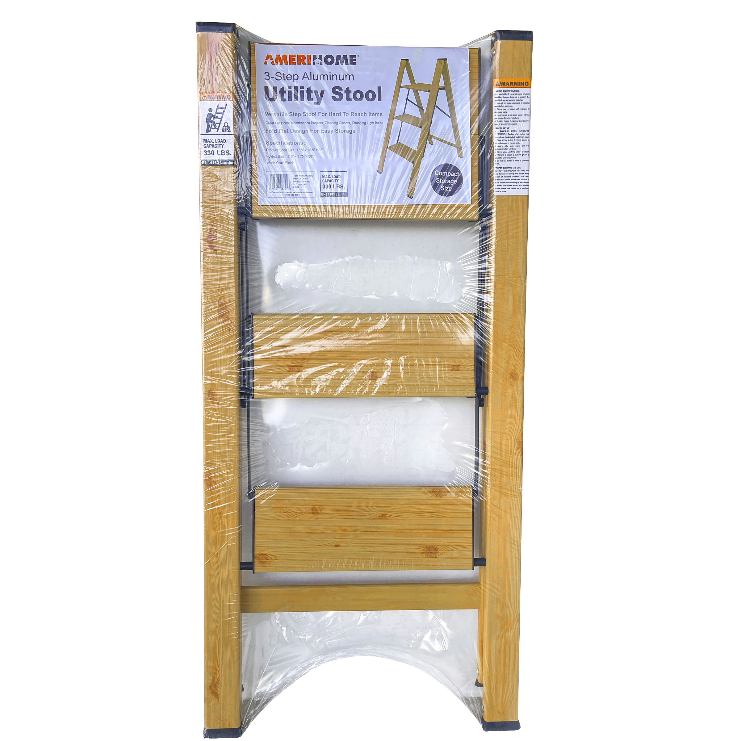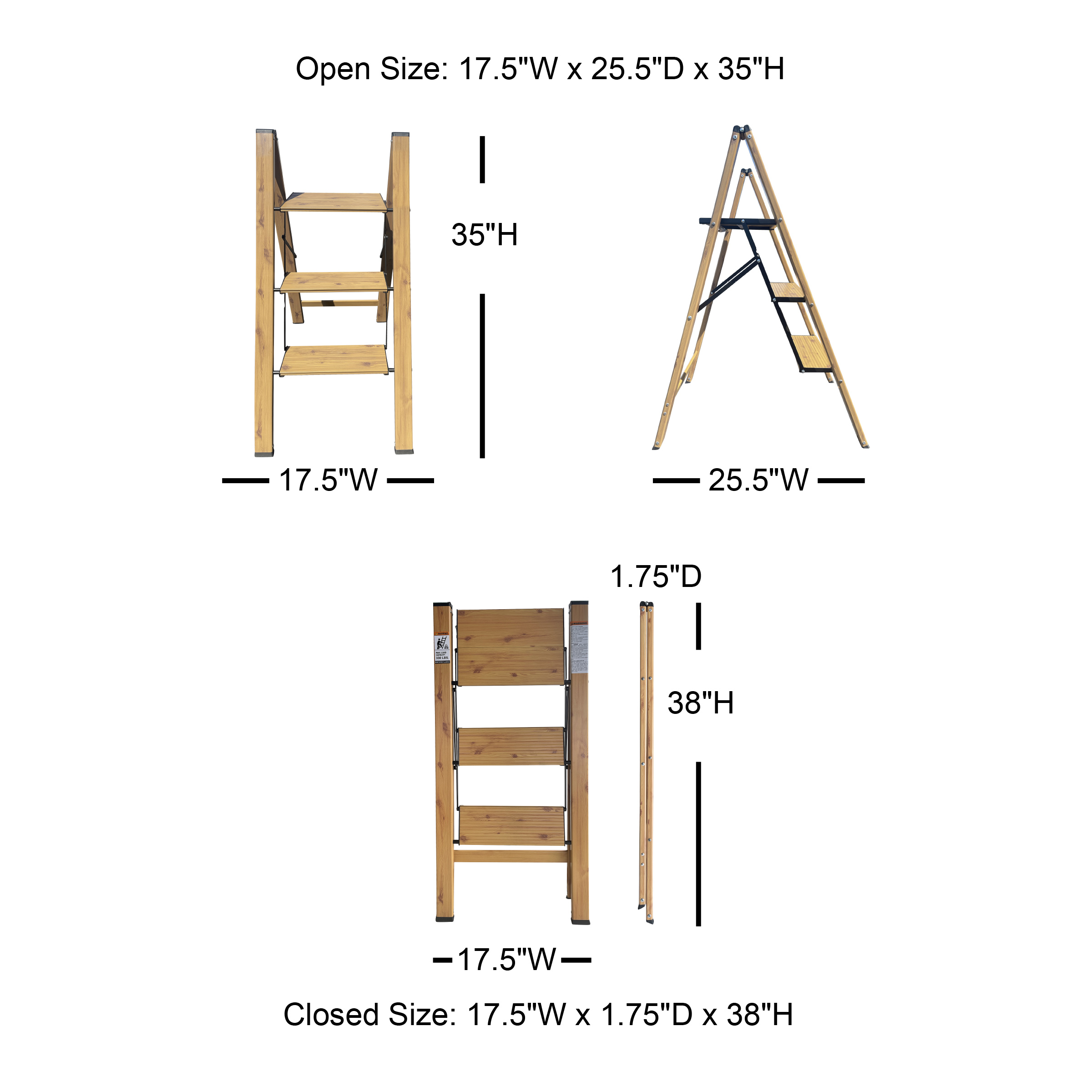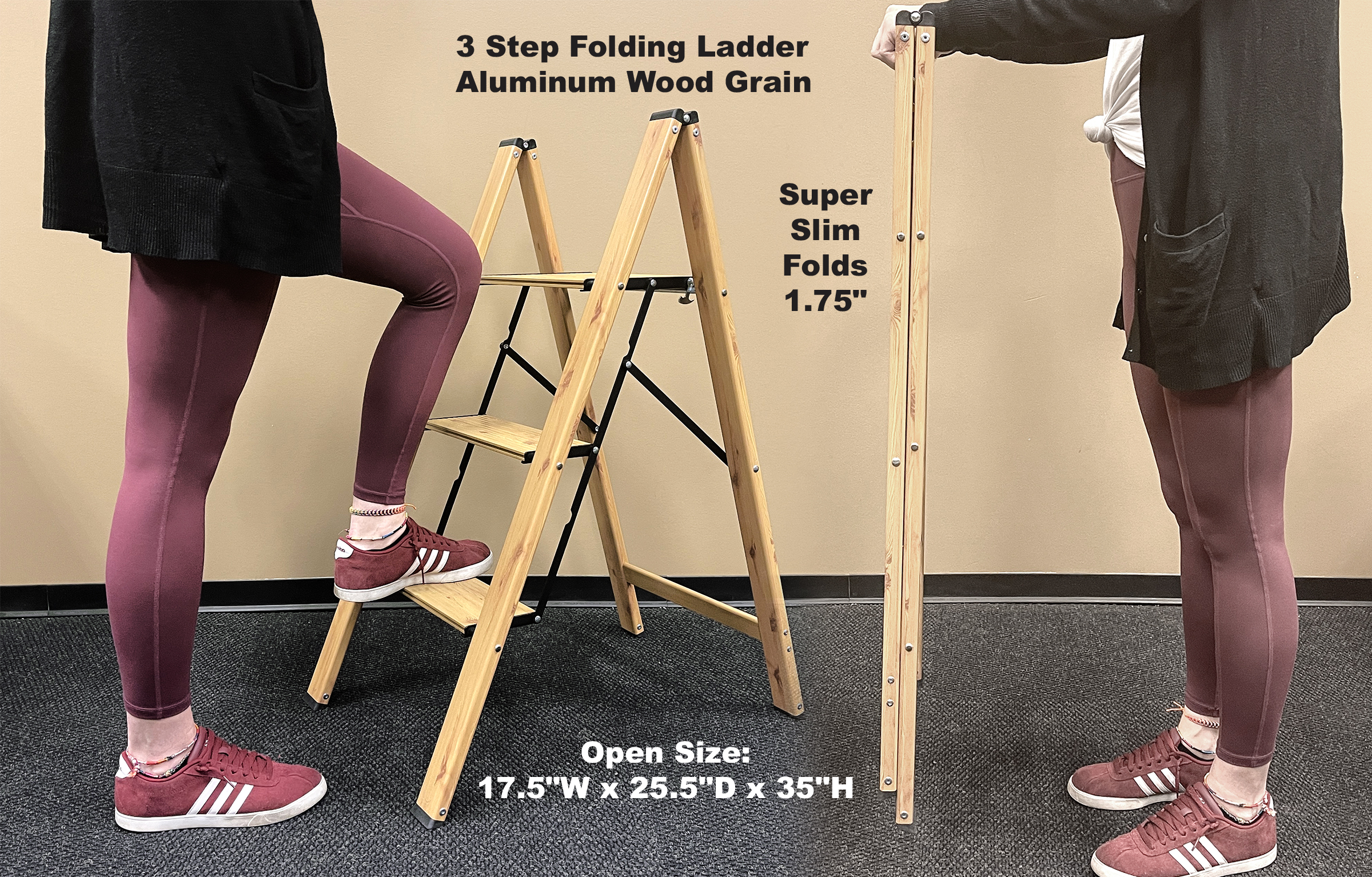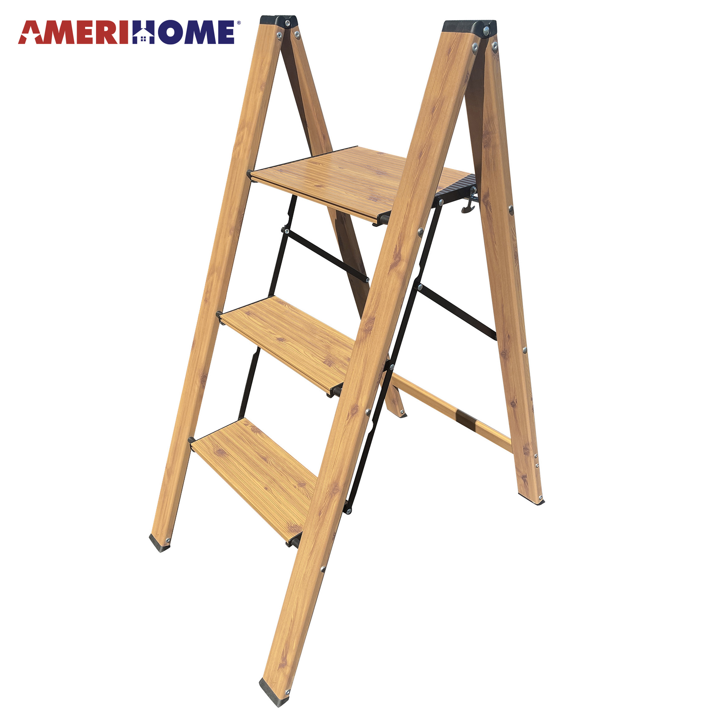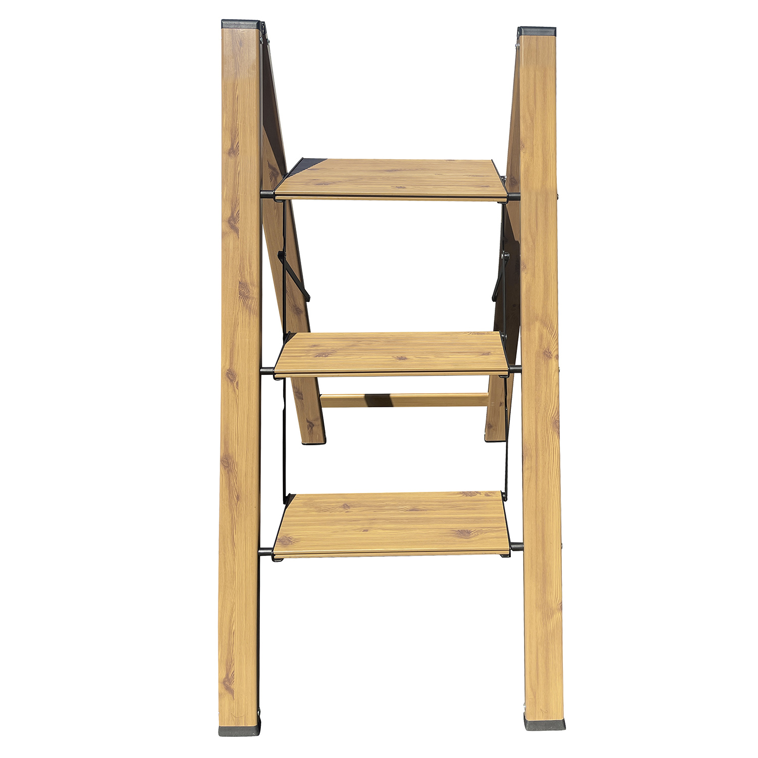 3 Step Aluminum Wood Grain Folding Ladder