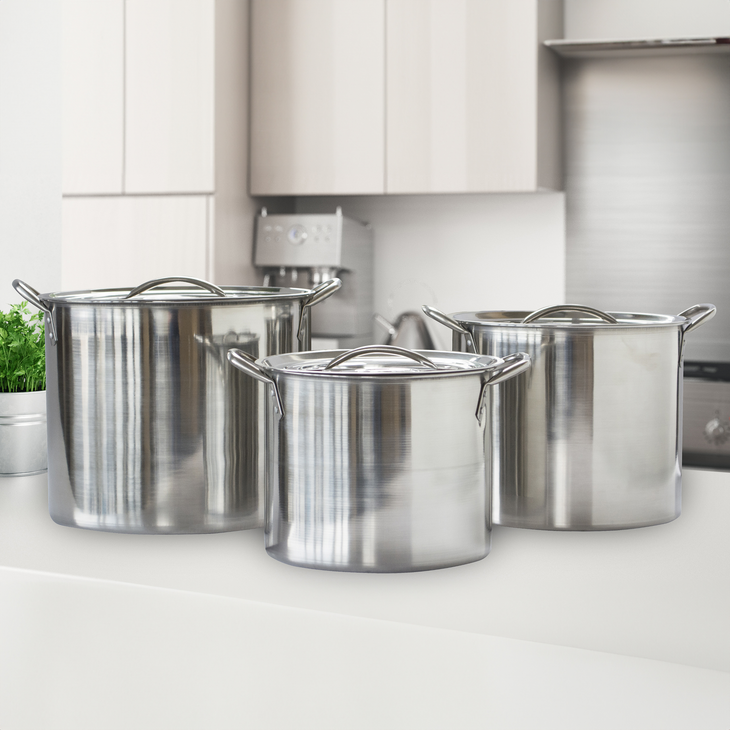 • 3 Pieces: 8 Quart / 12 Quart / 16 Quart
